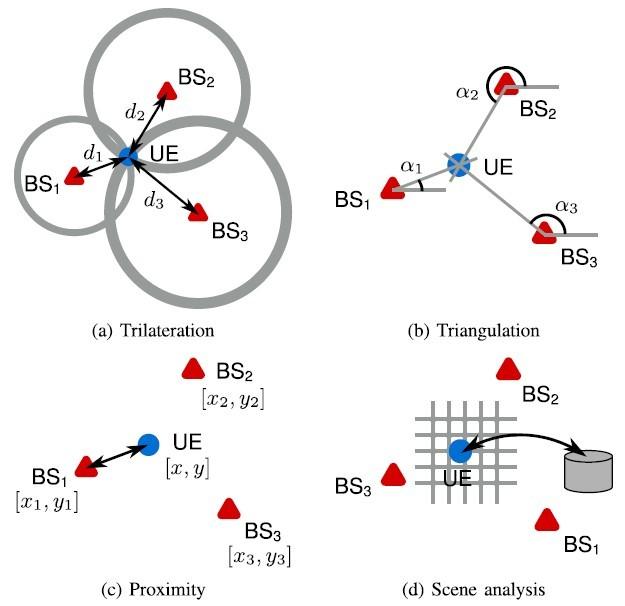 Figure 1: Fundamental positioning techniques using radio signals.[10]