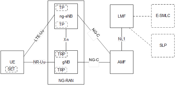 Figure 2: UE Positioning Overall Architecture applicable to NG-RAN. [9]